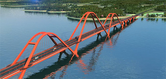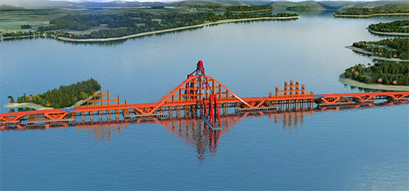 天子山大桥,是连通武汉与咸宁的122省道跨梁子湖的重要节点工程,采用双向4车道一级公路标准建设,大桥参照同类型水域的桥梁建设最高标准,采用大跨度连拱的设计方案,计划于2026年建成通车。此前,梁子湖南北两岸居民通行需绕行1个小时,天子山大桥项目建成后,一“桥”直达只需2分钟。