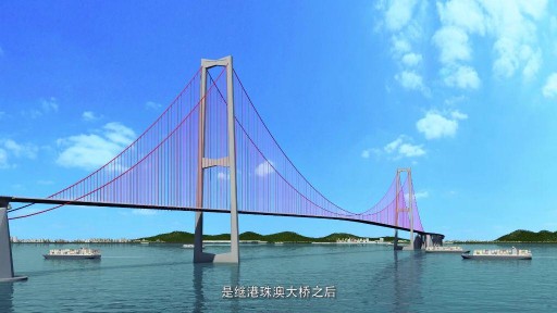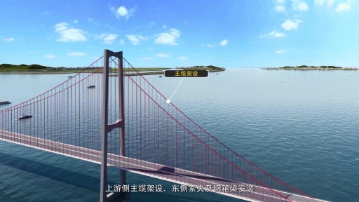 动画制作时,团队注重 “施工逻辑还原”:主缆架设按 “索股牵引→精准对接→张力调整” 的实际流程呈现,智能筑塔机的自动布料、振捣、爬升动作严格匹配设备运行参数;同时融入科技感表达,BIM 智慧工地的实时监控数据、深基坑应力变化等,通过动态图表与场景结合的方式直观展现,让枯燥数据 “活” 起来。渲染环节采用 4K 高清渲染技术,还原海洋环境的真实光影、混凝土的质感,让动画既有 “技术深度”,又有 “视觉冲击力”。